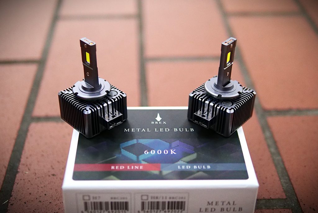 左が元々お使いだったHIDバルブで右がBREXのMETAL LED BULB D1S~コントロールBOXなどのパーツが一切ないので本体のバルブを入れ替えるだけで簡単に装着でき~放熱・排熱効果の高いヒートシンクを備え大光量6000lm (片側3000lm)の明るさを実現してます!