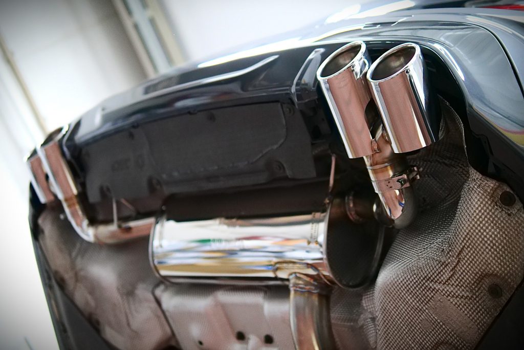 G21の320dにお乗りのオーナー様に~ほんの少しばかり後ろ周りが寂しいとのことで~3Dデザインの4テールステンレスマフラーに交換させていただきました!