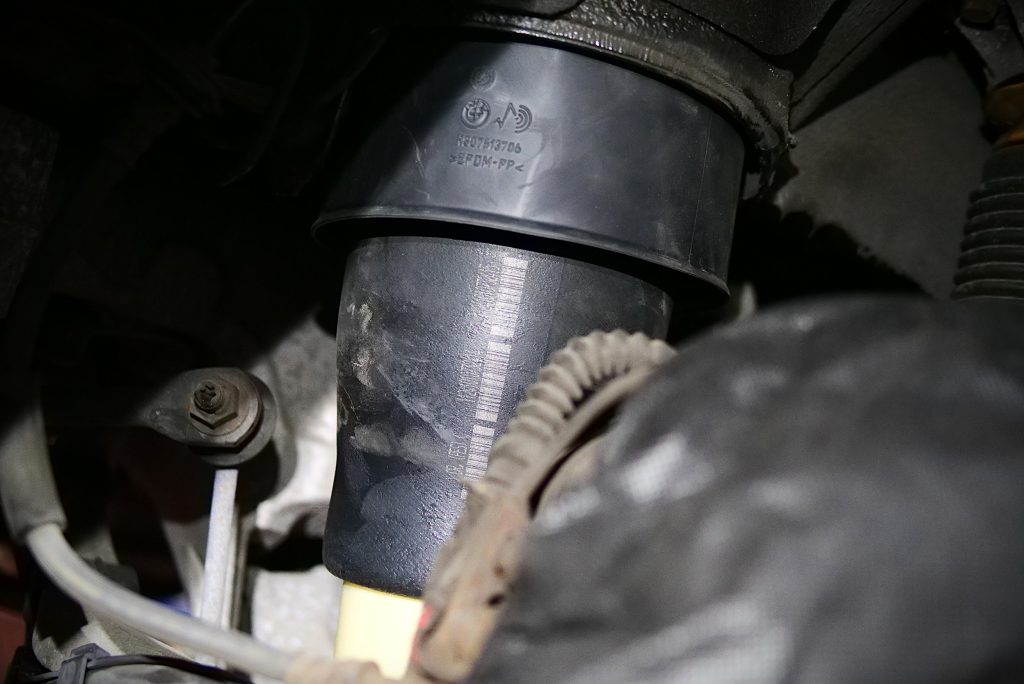 さてさてまたまた入庫してまいりましたF11/5シリーズツーリングのエアサス車両~一晩置いて朝見ると車が傾いているとのことでとっても多い症状がこちら~