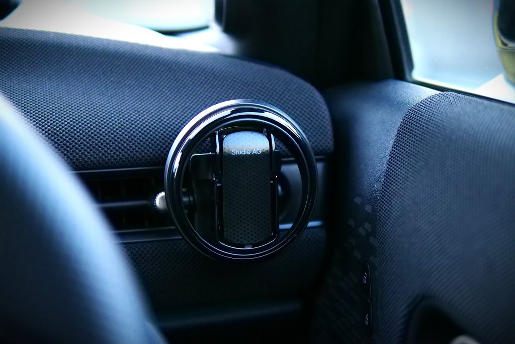 エアコン吹き出し口に工具なしのワンタッチでカッチリと固定~使わないときの収納時もスッキリスマート